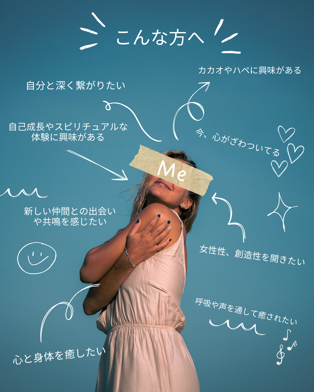 カカオセレモニーで心を開き、クリスタルボウルの音に包まれながら、 呼吸と祈りを通して、あなた自身の本質と優しく繋がる時間をお届けします。